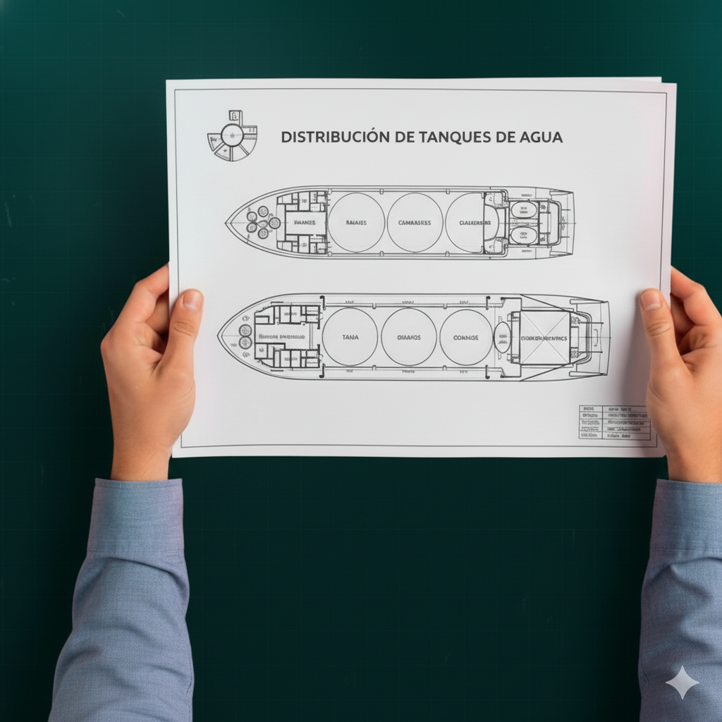 Desarrollamos planos técnicos especializados para la correcta distribución de tanques en barcazas y motochatas, garantizando un diseño eficiente, seguro y conforme a la normativa vigente.