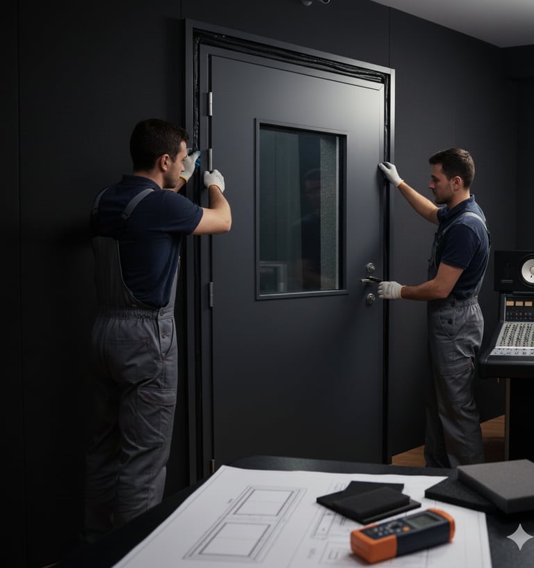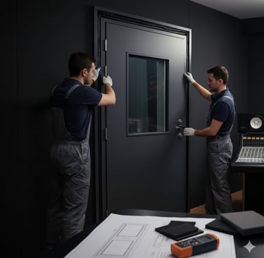 Diseñamos, fabricamos e instalamos puertas acústicas de alto rendimiento, garantizando un aislamiento eficiente y duradero.